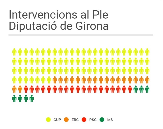 Pel que fa al nombre d’intervencions al ple, la CUP també destaca respecte la resta de partits tot i tenir només un sol representant: amb un total de 79 intervencions, supera en escreix les 19 intervencions d’Esquerra i PSC, i les 7 d’Independents de la Selva.